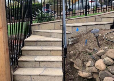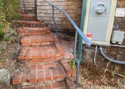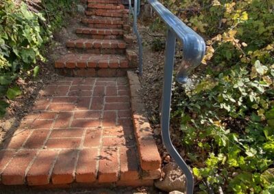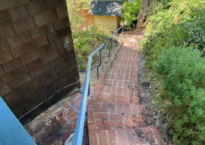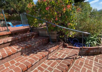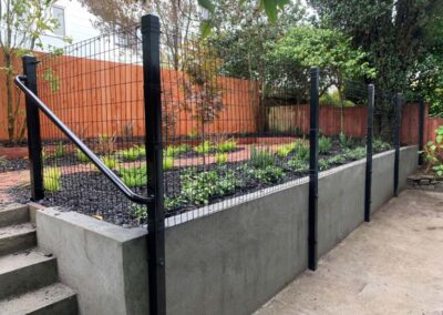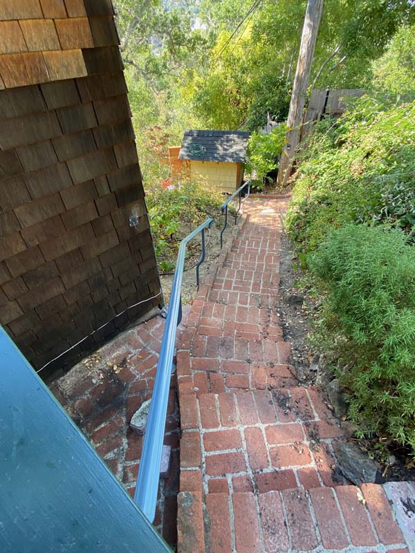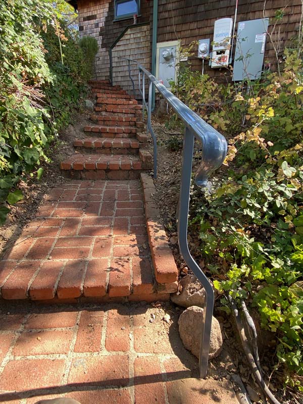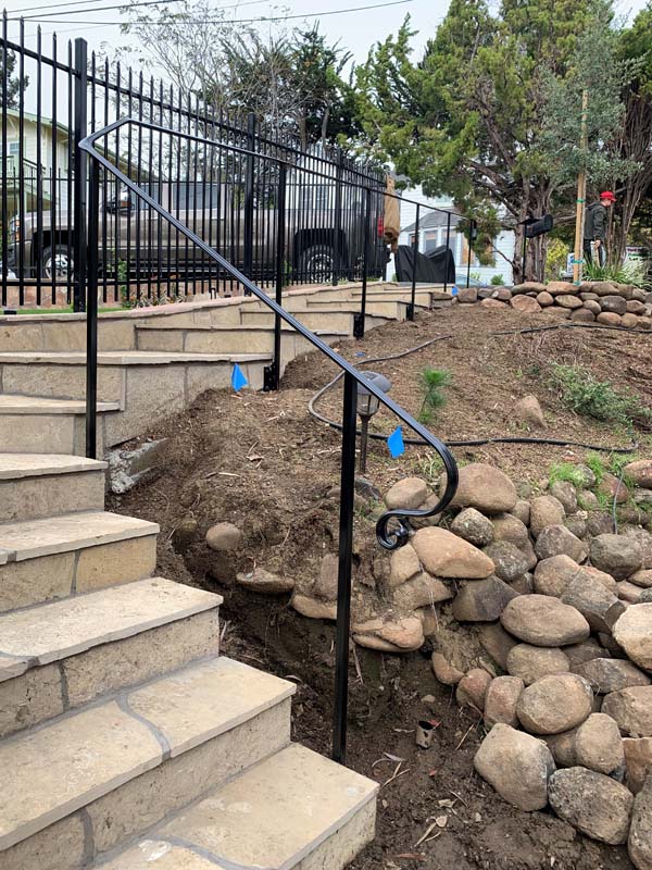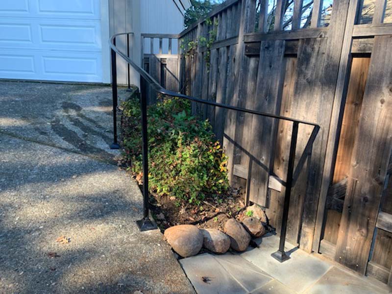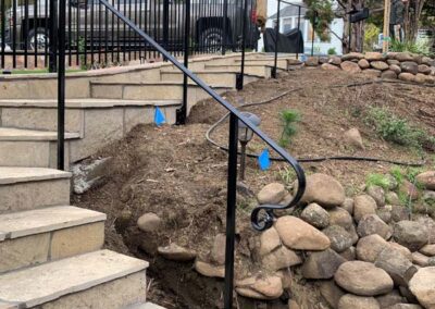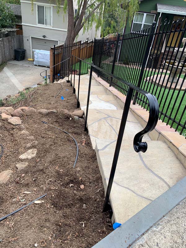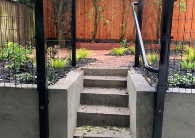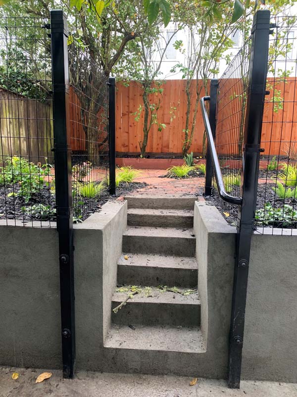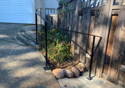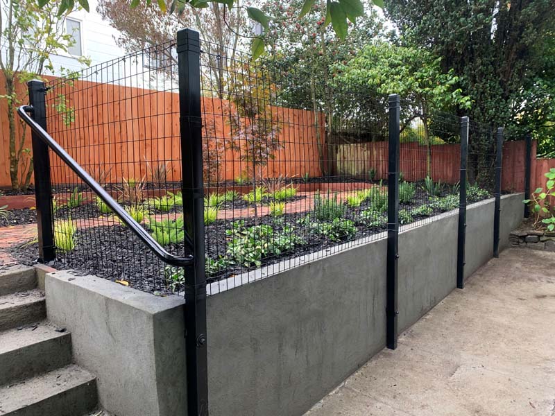 Guardrails can be one of two very different things. First is the short steel rail on the side of the freeway, which we do install. Secondly these can be fall protection for people for the sides of decks, stairs or natural obstacles. We install a few different types of pedestrian guardrails from using manufactured ornamental fencing to welded wire framed in redwood to custom horizontal rail. You can basically think of these as short fencing that has no gaps larger than 4” and a minimum overall height of 42”. Some cities or towns prohibit the use of horizontal members because it can become a ladder for the little ones.